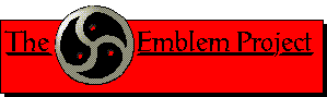 Here are the two most popular sketches of the Emblem (shown above on the left and right of the Emblem Project sign) which may be downloaded from The Emblem Project. If you'd prefer to have a copy of the file e-mailed to you, please e-mail Quagmyr. Or, if you prefer a different color scheme, please let him know and he will work that up for you as soon as he can. You can also feel free to make your own drawing of it, as others have. In doing so, though, please keep in mind that every feature of the Emblem has a symbolic meaning. They are all spelled out in the official explanation. If you deviate, you are probably eliminating symbolic meaning. Please note that Quagmyr also sells the BDSM Emblem as jewelry, artwork, and on other products. For more information about jewelry, artwork and products with the Emblem, go here.
