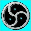 The BDSM emblem has no "obvious" symbolism because it was created to be enigmatic. To the vanilla observer who would be put off by BDSM, it is merely an attractive piece of jewelry. Thus, we can wear it freely as a friendly salute, nod, and wink to other BDSMers we should happen to pass on the sidewalks and in the hallways of our daily lives. To the insider, however, the Emblem is full of meaning. The three divisions represent the various threesomes of BDSM. First of all, the three divisions of BDSM itself: B&D, D&S, and S&M. Secondly, the three-way creed of BDSM behavior: Safe, Sane, and Consensual. Thirdly, the three divisions of our community: Tops, Bottoms, and Switches. It is this third symbolism that gives meaning to the holes in each unit. Since BDSM is at the very least a play style and at its greatest a love style, the holes represent the incompleteness of any individual within the BDSM context. However "together" and "whole" individuals may be, there remains a void within them that can only be filled by a complimentary other. BDSM cannot be done alone. The resemblance to a three-way variation on the Yin-Yang symbol is not accidental. As the curved outline of Yin and Yang represent the hazy border between where one ends and the other begins, so do the curved borders here represent the indistinct divisions between B&D, D&S, and S&M. The metal and metallic color of the medallion represents the chains or irons of BDSM servitude/ownership. The three inner fields are black, representing a celebration of the controlled dark side of BDSM sexuality. The curved lines themselves can be seen as a stylized depiction of a lash as it swings, or even an arm in motion to deliver an erotic spanking. The all-embracing circle, of course, represents the overlying unity of it all and the oneness of a community that protects its own.